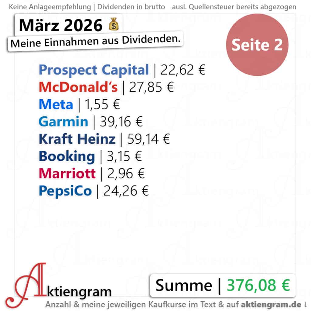 Zeit für Meine Dividenden im März 2026! Insgesamt wurden es in diesem Monat 376,08 € brutto. Da mein Freibetrag in diesem Jahr noch nicht aufgebraucht ist, entspricht das auch der Nettosumme.