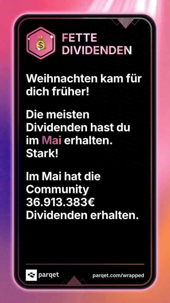 Unter parqet.com/wrapped werden öffentlich geteilte Badges mit #parqetwrapped gesammelt. Hier macht es auch großen Spaß, einmal durchzzuschauen, was andere so erhalten haben. 🥳