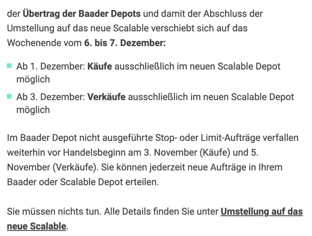 Damit endet dann auch der bisherige Parallelbetrieb zwischen Baader Bank und Scalable Depot.